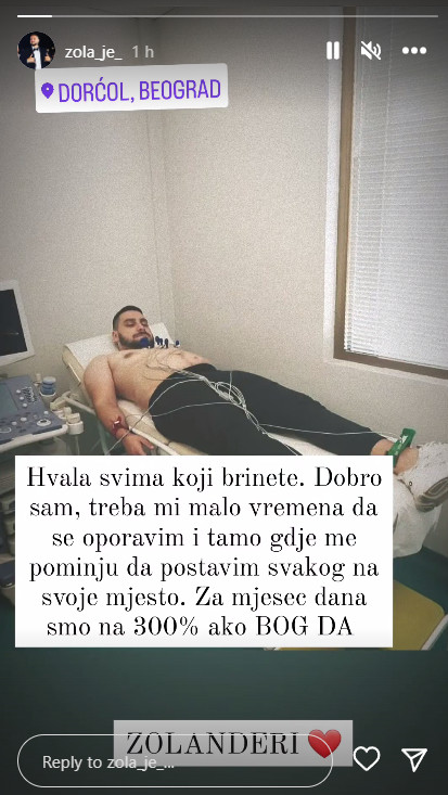 Bivši dečko Miljane Kulić, Lazar Čolić Zola, objavio je zabrinjavajuću fotografiju iz bolničkog kreveta na svom Instagram profilu.