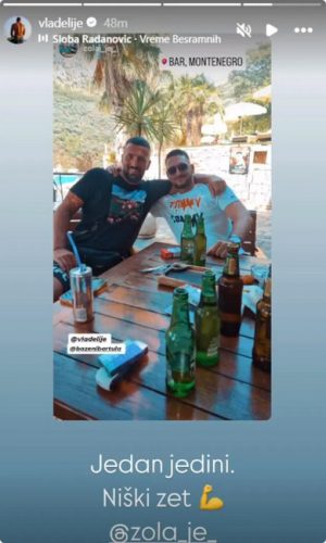 Njih dvojica su se slikali na bazenu, a Tomović je objavio zajednički stori uz poruku: „Niški zet“, aludirajući na Zolin burni ljubavni odnos sa Miljanom Kulić.