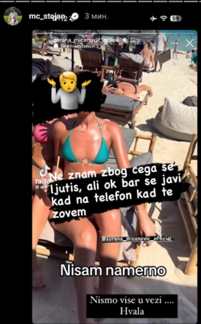 Za razliku od Zorane, MC Stojan se provodi na Kipru. On je na svom Instagramu delio fotografije i snimke sa devojakama, a zbog jednog videa ostao je bez 22 godine mlađe devojke.
